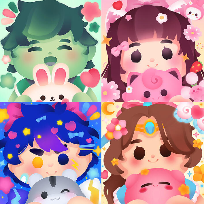 This icon is made through a base, you can choose between 4 different expressions, it can also be holding an object, animal or stuffed animal. Please contact me for more info.