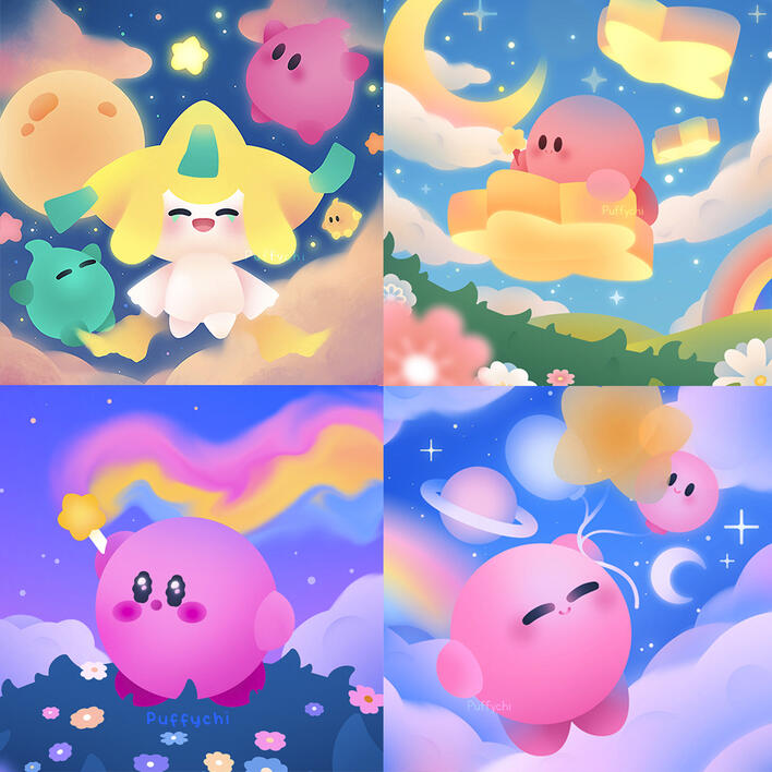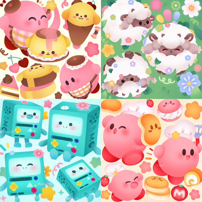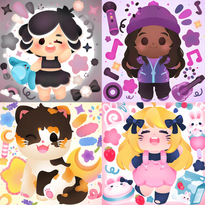 Large drawing with small details arround it, I can draw chibis, animals, fanart...etc.